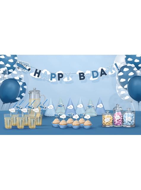6 palitos decorativos de avião e nuvem - Little Plane
