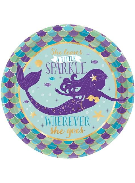 8 pratos de sobremesa com sereia- Mermaid Wishes (18 cm)
