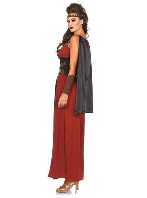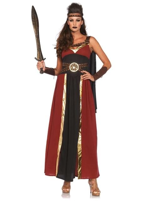 Inclui: vestido comprido com cinto de pele sintética e fivela redonda, munhequeiras e diadema