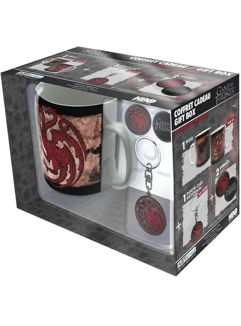 Pack presente Targaryen: caneca, porta-chaves, crachás - Game of Thrones